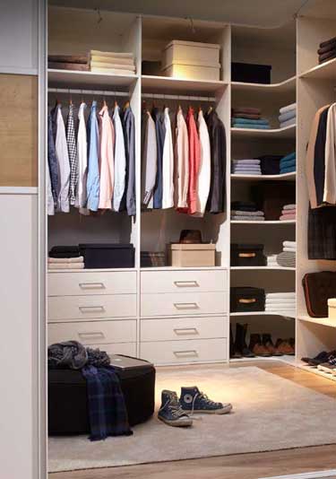 Een schuifdeurkast plaatsen is ook geen dagelijks werk, maar kan door iedereen eenvoudig worden gedaan. De schuifdeuren zijn volledig voorgemonteerd en de gratis meegeleverde railset op maat gemaakt. Het monteren van de schuifdeurrail tegen het plafond is het meeste werk. Bekijk de kasten montagefilm - ervaar zelf hoe eenvoudig het is om een schuifdeur te monteren. Een kastinterieur is ook al volledig op maat gemaakt en de legplanken zijn ook al voor gemonteerd met gefreesde plankendragers. Een plankendrager in de staander draaien en het meeste werk is gedaan. Het kastinterieur is aan de voorzijde afgewerkt met een stevig kunststof ABS afgeschuind profiel dat beschadigingen voorkomt en het kastinterieur een extra fraai uiterlijk geeft.