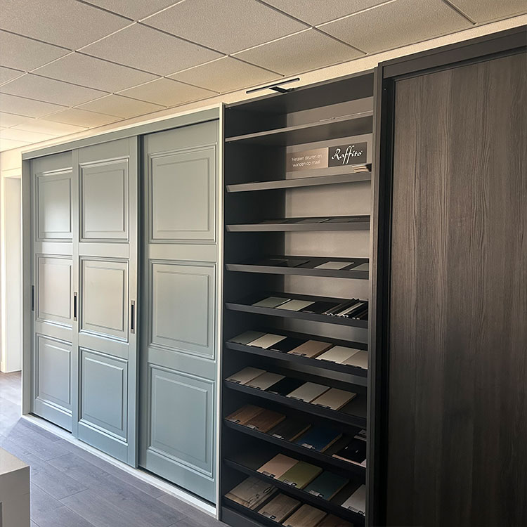 VoordeelSchuifdeurkast heeft een moderne showroom waar schuifdeurkasten van StoreMax, Stanley en Raffito voor je getoond staan. Wij informeren je graag over de kwaliteit van de merken en de uitgebreide mogelijkheden op het gebied van interieur en exterieur die schuifdeurkasten op maat bieden. Zo kun je voor elke kamer in jouw woning een mooie opbergruimte creƫren. Wij kunnen je natuurlijk ook helpen om een praktisch interieur samen te stellen, waarbij we samen met je tot oplossingen komen.